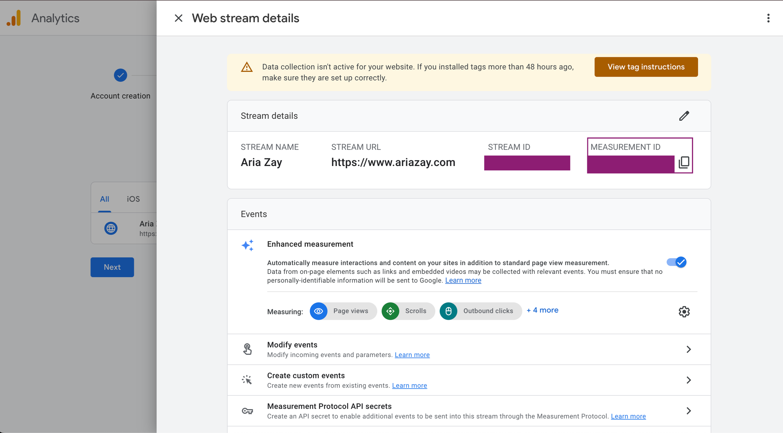 You’ll now get the Web Stream Details page, and you’ll want to copy the Measurement ID.
