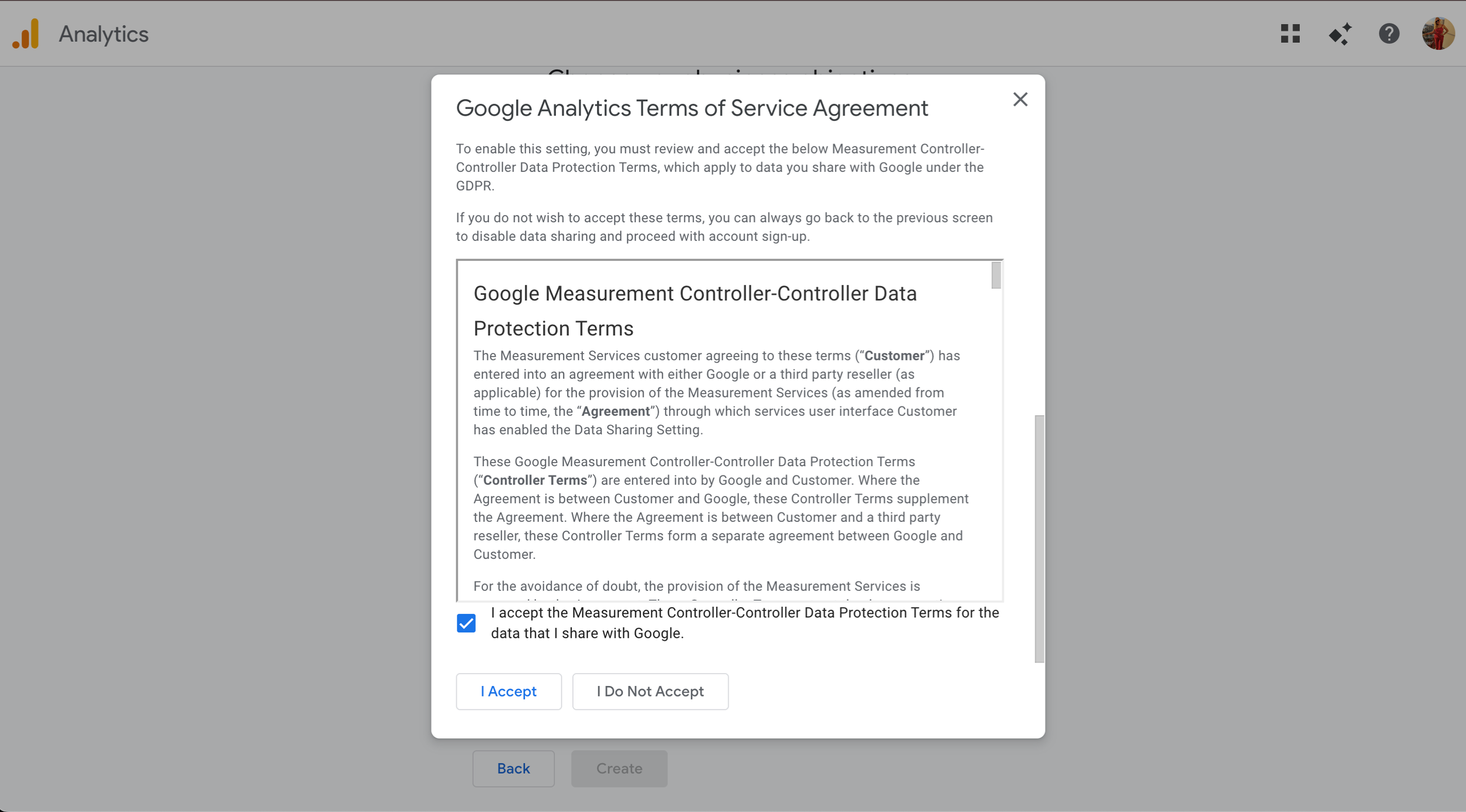 When you hit Create, you’ll need to accept the terms of service.