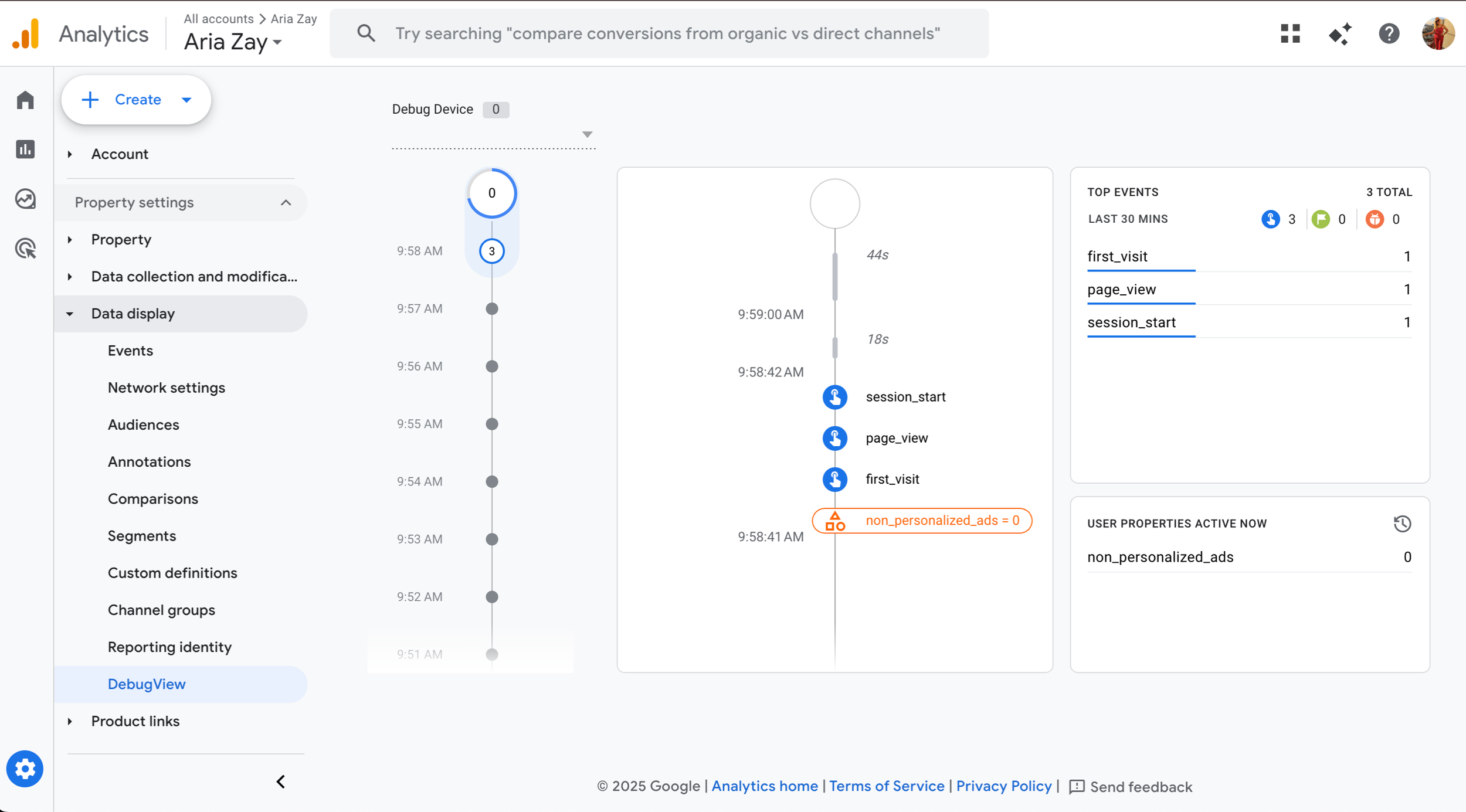 Then, inside GA4, go to Data display and choose Events and then go to Recent Events
