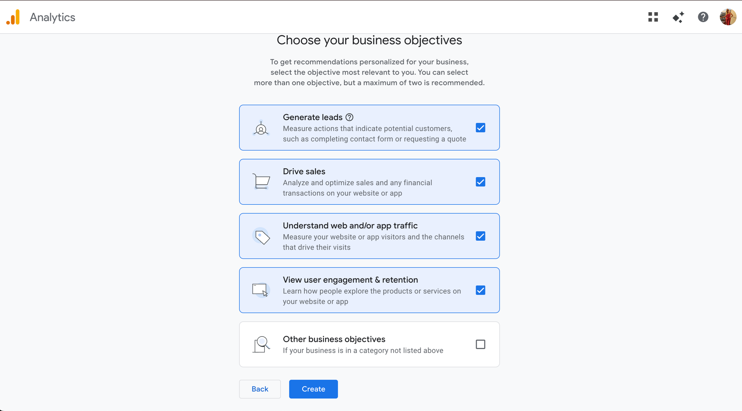 4. Enter Your Business Objectives