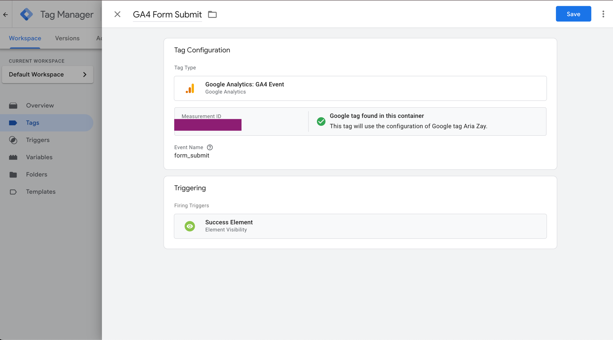 Create GA4 Success Element (Still Inside Google Tag Manager