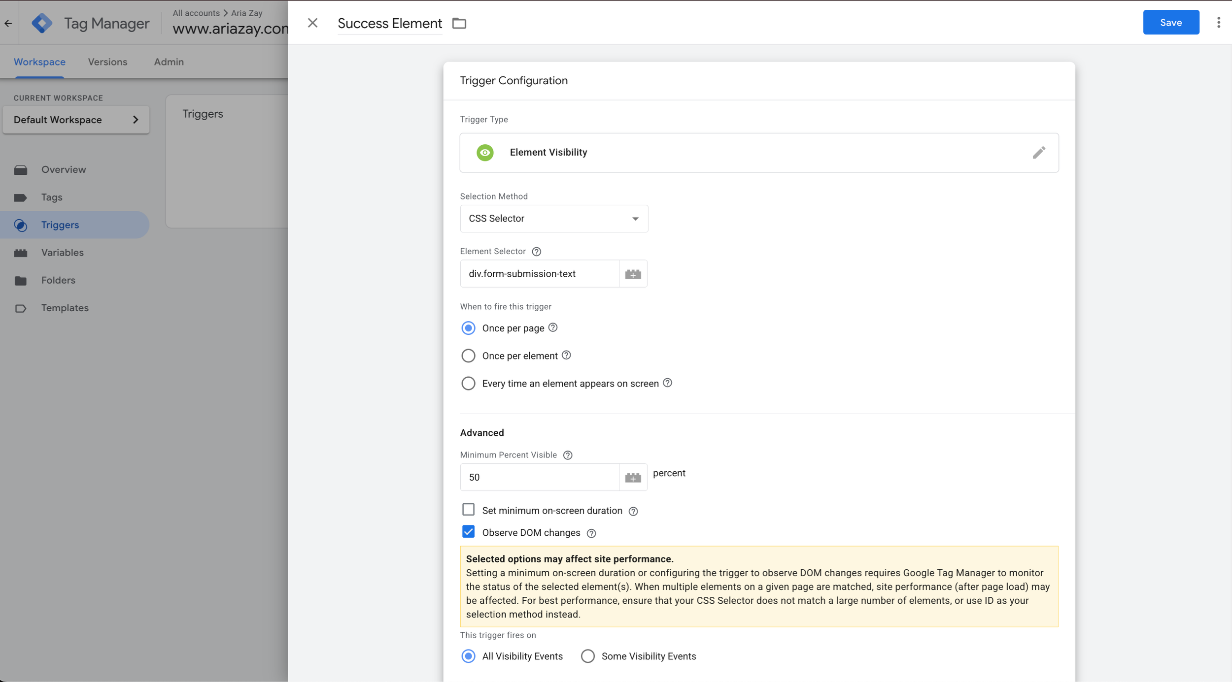 Trigger Type: Element Visibility
