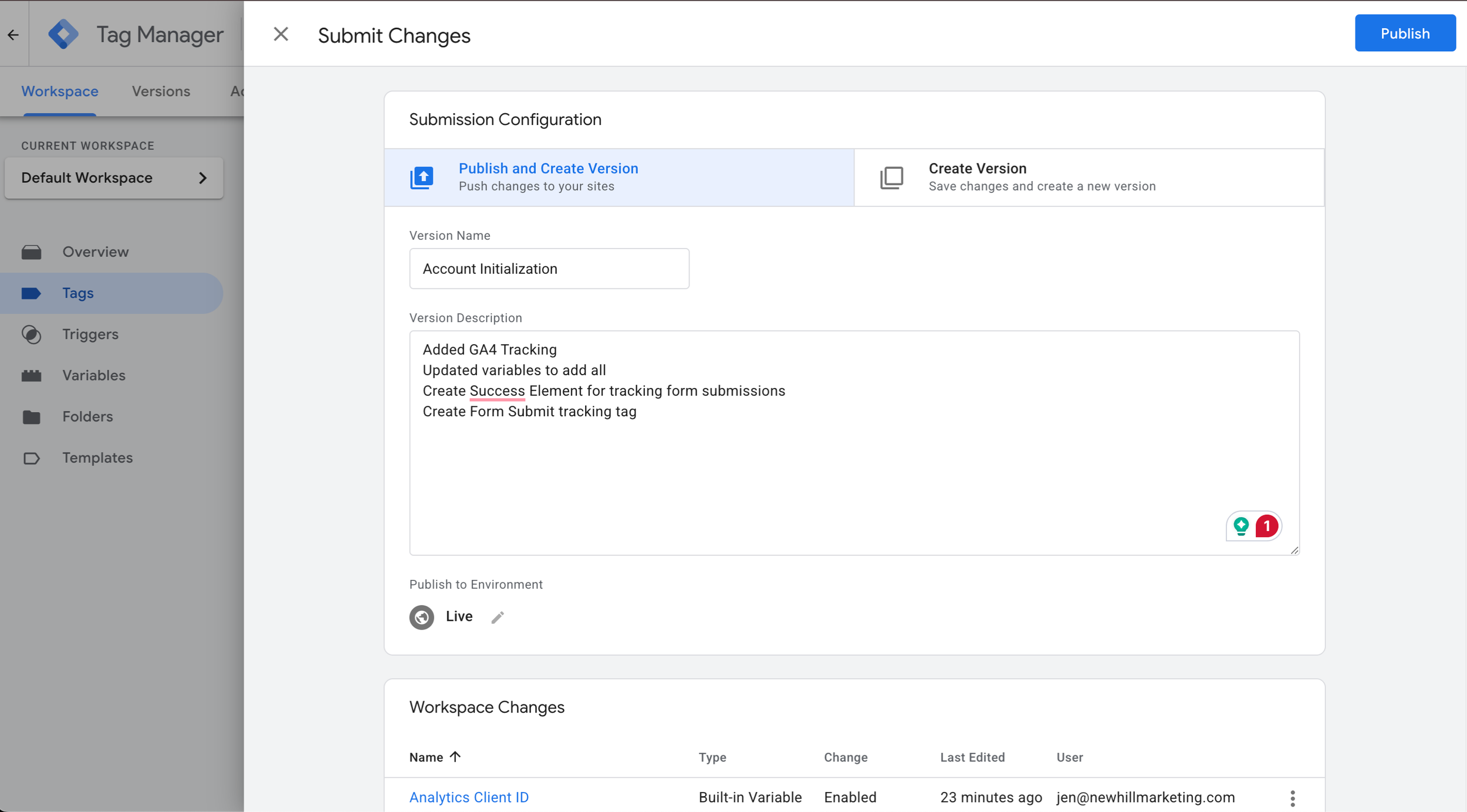 So, let’s head back to Google Tag Manager and get these changes published live.